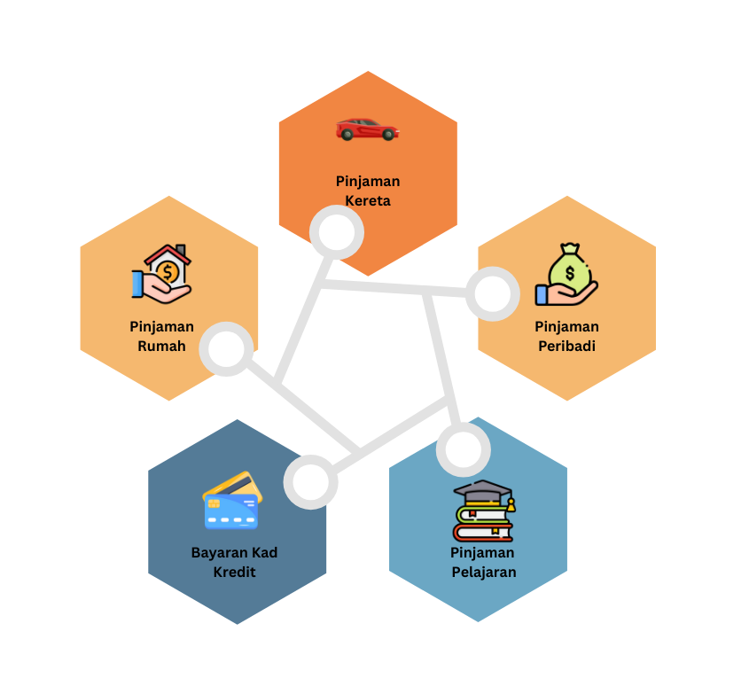 Jika anda mempunyai hutang seperti bulanan kereta RM1,500, kad kredit RM2000, pinjaman perumahan RM2000 dan pinjaman peribadi RM2000, anda boleh satukan hutang semua menjadi bulanan serendah RM2000, cuma tempoh pembayaran menjadi lebih panjang. Nak tahu lebih lanjut, boleh klik di butang whatsaap atau hubungi kami di talian seperti di bawah: